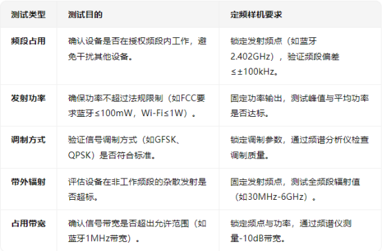 符合法规要求:监管机构需通过定频测试确认设备是否满足频段使用许可、功率限制等标准。